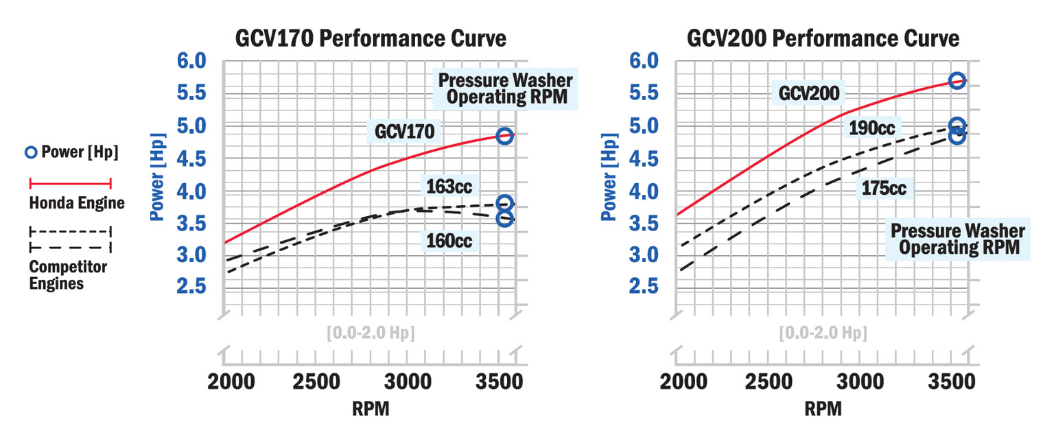 - GCV170 delivers an increase of 18% more torque and 9% horsepower *