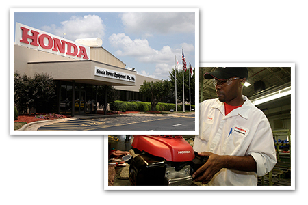 Nearly 75 percent of Honda power products sold in America are produced using domestic and globally sourced parts at the Honda Power Equipment Manufacturing, Inc. (HPE) facility in Swepsonville, North Carolina.